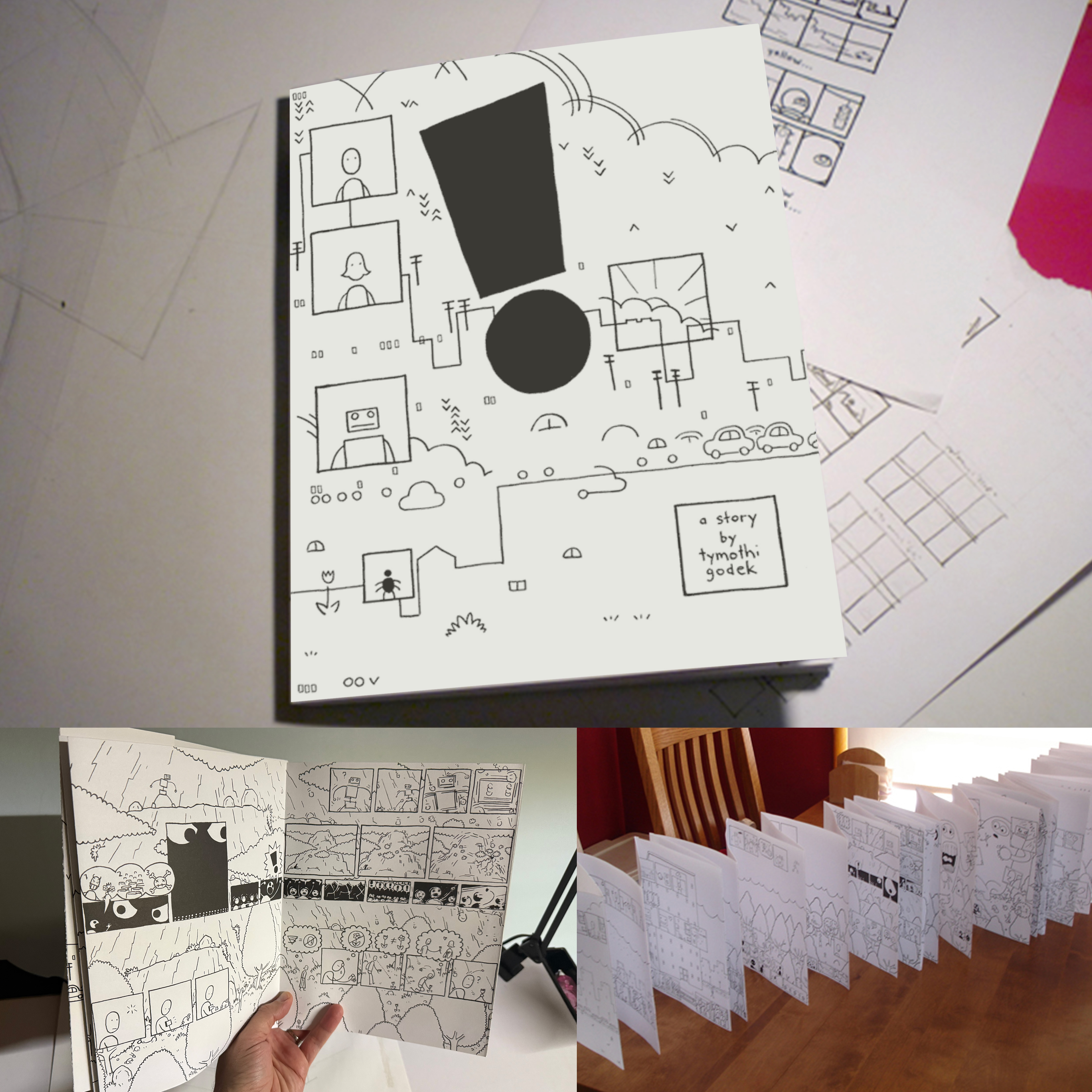 Twisting and overlapping wordless story threads follow a man, a woman, a robot, and a giant rampaging monster as their paths converge and disperse over the course of one pretty eventful day. Over 33 feet when fully extended, it makes for one loooong comic strip. Awarded a Xeric grant back when that was a thing.