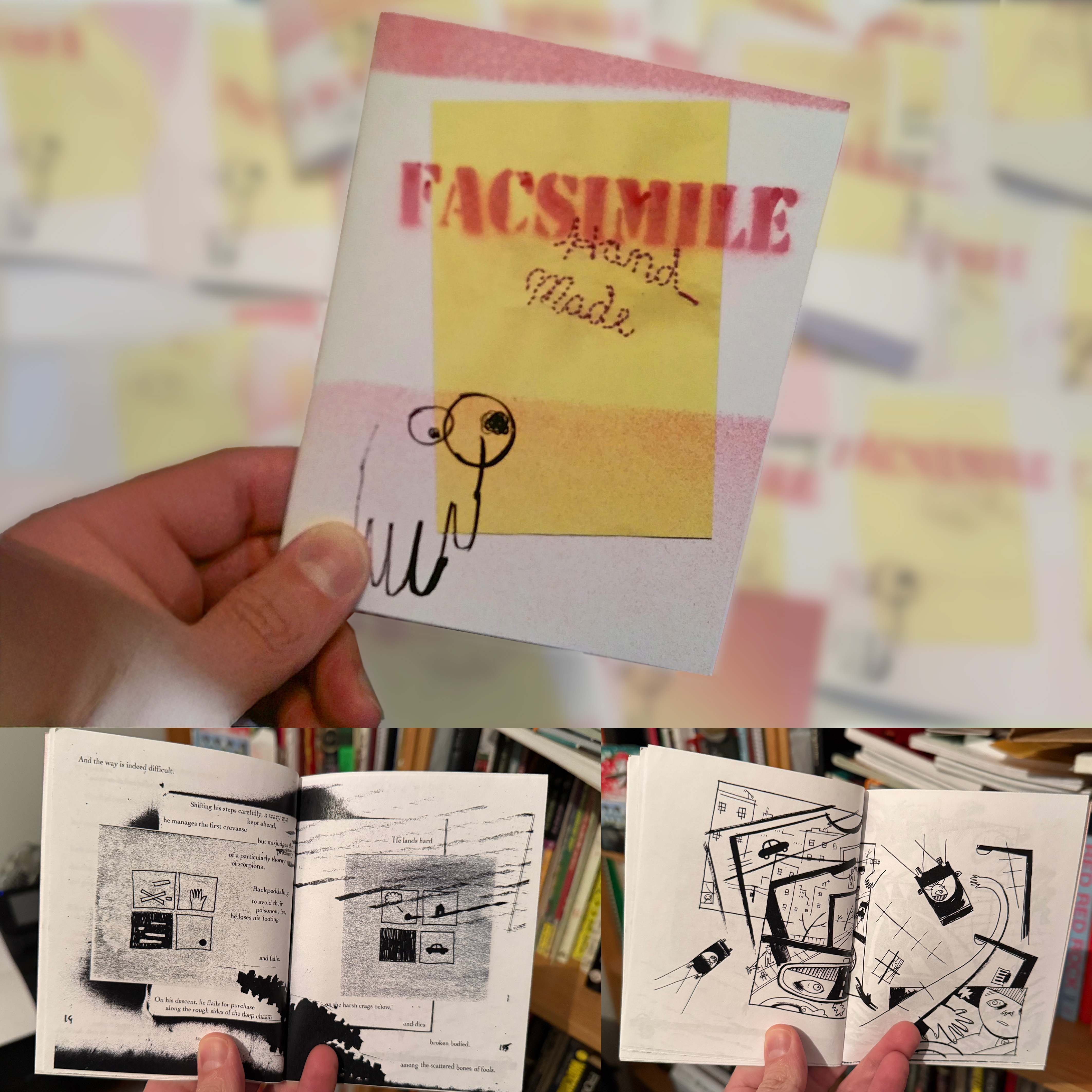 24 pages, black and white with color cover, each one titled “FACSIMILE” individually with spray paint.